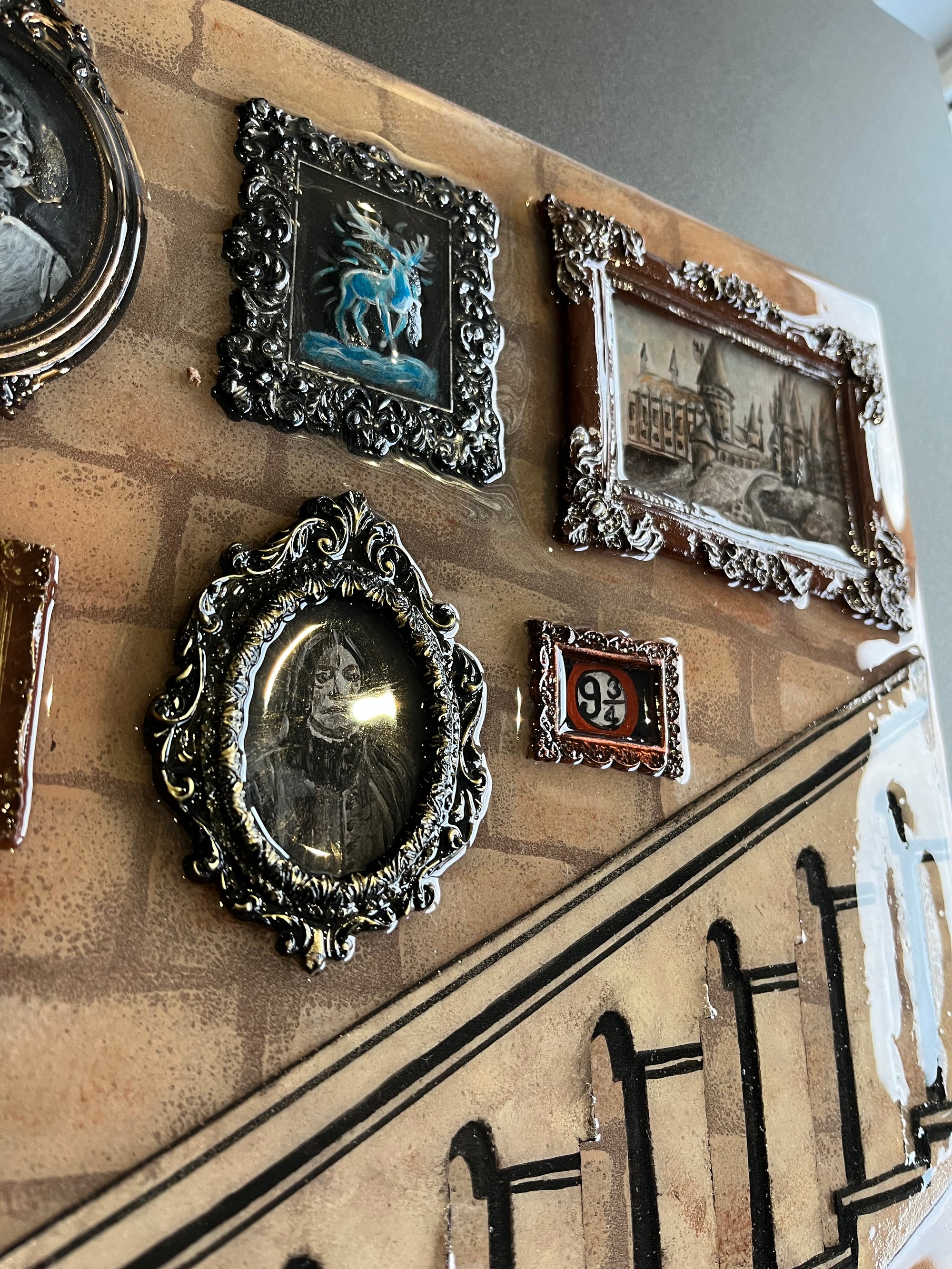 Acrylic and resin on a wood panel
